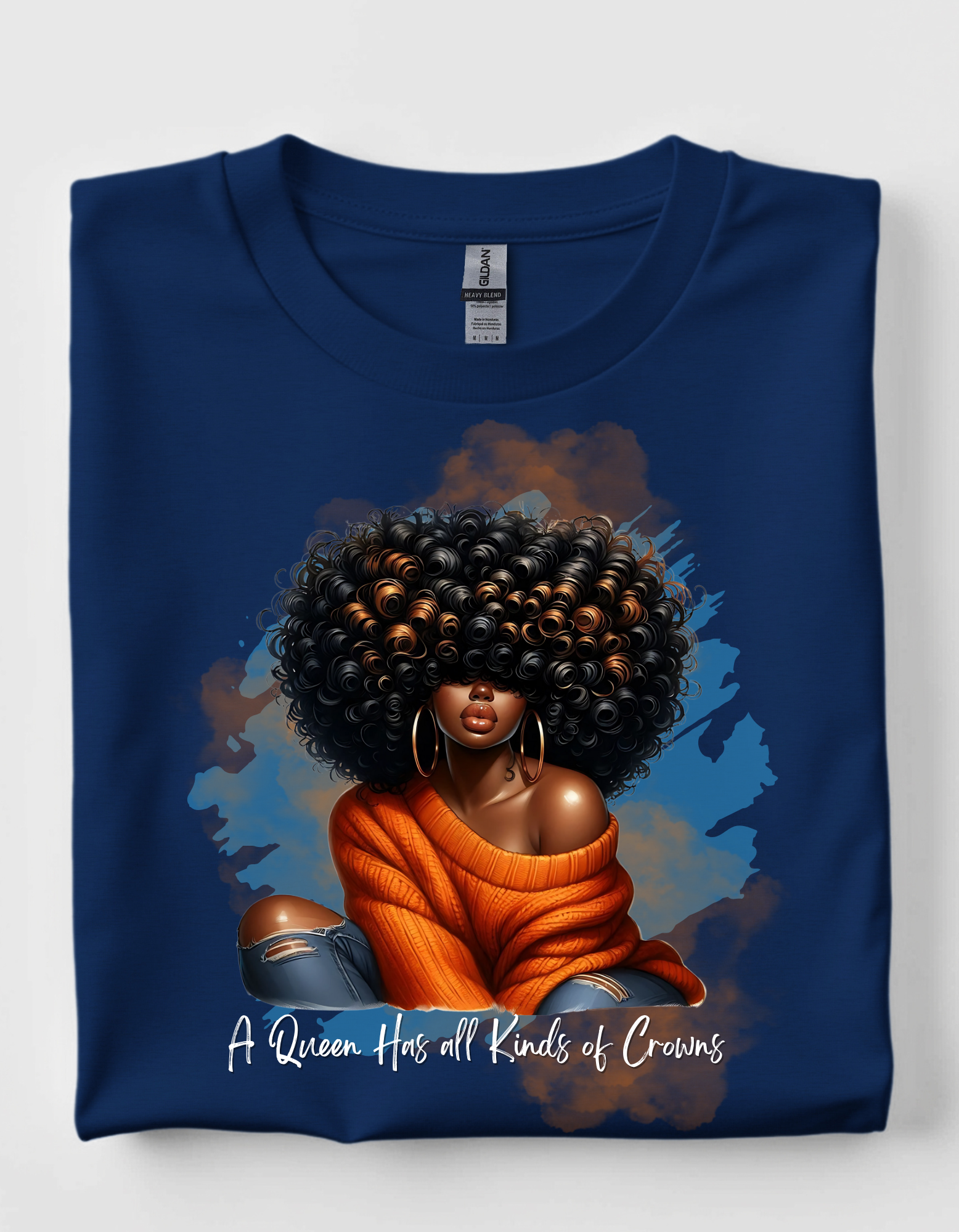 Celebrate the beauty and diversity of queens everywhere with the Queen's Crown Tee. Crafted for those who embrace and honor different kinds of queens. Perfect for self-expression and making a bold cultural statement.